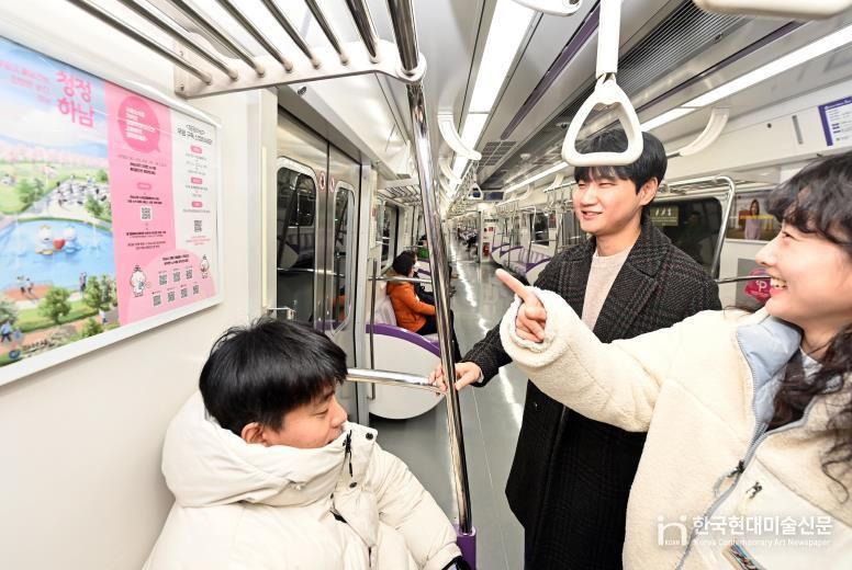 한국현대미술신문 배윤섭 기자 | 하남시가 무심코 지나치는 시민들의 이동 시간을 하남의 매력으로 물들이는 이색 홍보를 펼쳐 화제다. 서울 도심과 여의도를 잇는 지하철 5호선의 특성을 전략적으로 활용해 하남선 객차를 감성적인 전시 공간으로 탈바꿈시키며 시민들의 일상 속에 깊숙이 파고들고 있다.