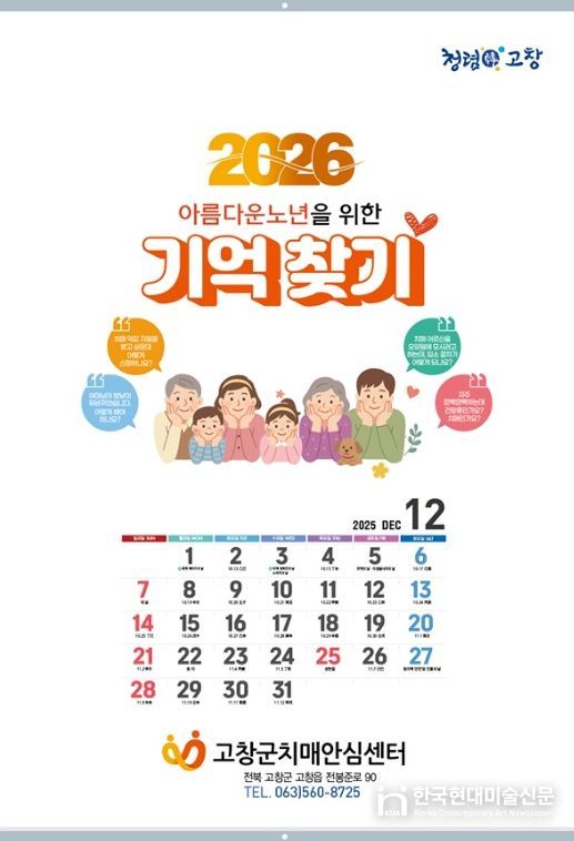 한국현대미술신문 기자 | 고창군 치매안심센터가 치매에 대한 올바른 인식 개선과 예방 실천을 돕기 위해 ‘2026년 건강달력’을 제작해 지역 주민에게 배부한다고 밝혔다.
