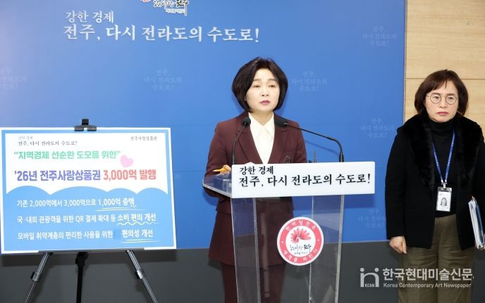 한국현대미술신문 기자 | 전주시가 2026년 병오년 새해부터 장기화된 경기 침체와 고물가 등으로 어려움을 겪는 소상공인과 지갑이 가벼워진 시민을 위해 전주사랑상품권을 50% 증액해 발행키로 했다.