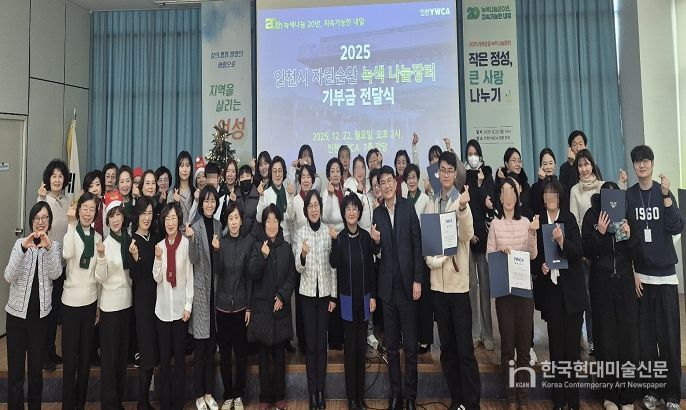 한국현대미술신문 박재남 기자 | 인천광역시는 지난 12월 22일 (사)인천YWCA와 함께 ‘자원순환 녹색 나눔장터’운영을 통해 조성된 기부금 약 4백여만 원을 한부모가정과 자립준비청년 등 지역사회 이웃 10곳에 전달했다고 밝혔다.