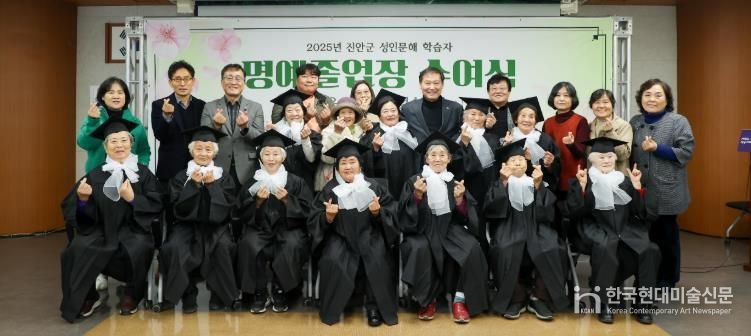 한국현대미술신문 기자 | 진안군은 30일 군청 상황실에서 성인문해 교육과정을 성실히 이수한 어르신들을 대상으로 ‘성인문해 학습자 명예졸업장 수여식’을 개최했다.