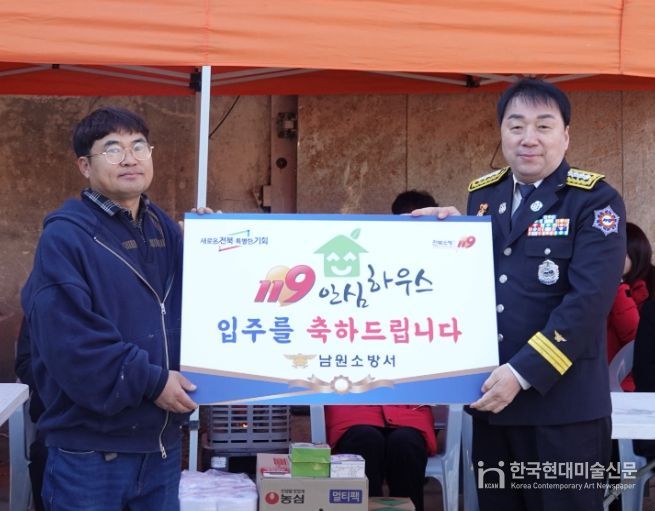 이날 입주식에는 전북특별자치도소방본부와 남원소방서를 비롯해 전북사회복지공동모금회, 남원시노인복지관, 주천면 행정복지센터, 남·여 의용소방대, 마을 이장 등 관계자들이 참석한 가운데 ▲입주선물 전달 ▲입주자 감사인사 ▲기념촬영 등이 진행됐으며, 기초소방시설과 생필품 등 입주 선물을 전달하며 새로운 생활의 시작을 응원했다.