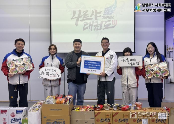 한국현대미술신문 배윤섭 기자 | 남양주시는 지난 29일 다산동 소재 나르샤태권도가 지역 내 취약계층을 돕기 위해 라면 600개를 남양주시 사회복지관 서부희망케어센터에 후원했다고 30일 밝혔다.
