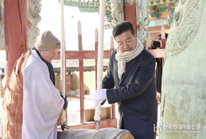 이어 수덕사 범종각에서 새해를 알리고 한 해 안녕을 기원하는 신년타종 행사에 참석했다.