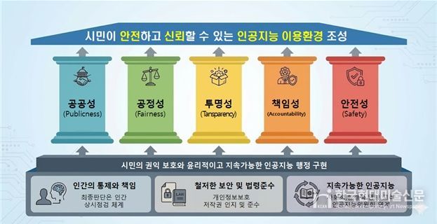서울시는 인공지능 활용의 기준으로 공공성, 공정성, 투명성, 책임성, 안전성의 다섯 가지 원칙을 설정하고, 이를 ‘서울형 AI 윤리 기준’으로 정립했다.