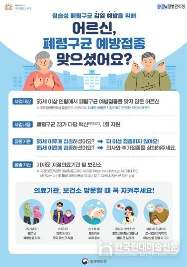 한국현대미술신문 정소영 기자 | 영도구보건소는 폐렴으로 인한 중증 합병증을 예방하기 위해 만 65세 이상 어르신을 대상으로 폐렴구균 무료 예방접종을 상시 실시하고 있다.