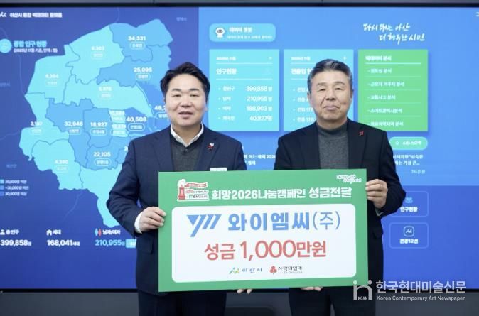 한국현대미술신문 신정은 기자 | 와이엠씨(주)가 지난 5일 아산시를 방문해 ‘희망2026나눔캠페인’ 성금 1,000만 원을 기탁했다.