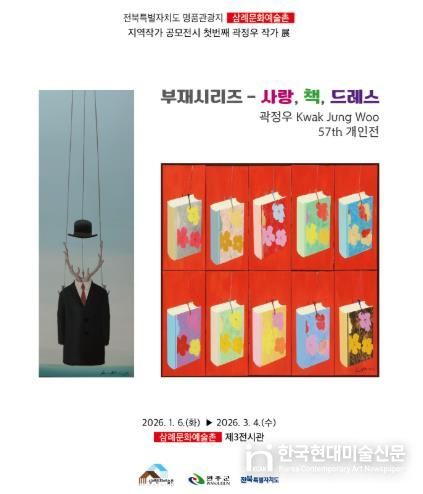 한국현대미술신문 기자 | 완주군이 전북특별자치도 명품 관광지인 삼례문화예술촌에서 지역작가 공모전으로 곽정우 작가의 ‘부재시리즈 – 사랑, 책, 드레스’ 전시를 시작했다.