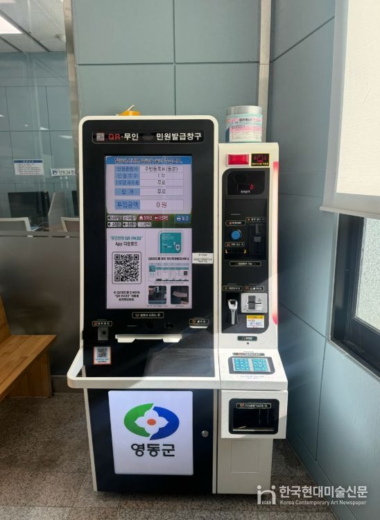 한국현대미술신문 신정은 기자 | 충북 영동군이 무인민원발급기 수수료 전면 무료화를 시행하며, 군민 중심의 민원서비스 개선에 나섰다.