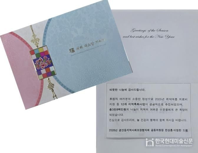 한국현대미술신문 배윤섭 기자 | 광주시 경안동 지역사회보장협의체는 2025년 한 해 동안 경안동에 이웃돕기 후원을 이어온 개인 및 단체 후원자 170명을 대상으로 감사 서한을 발송했다고 12일 밝혔다.