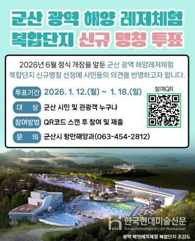 한국현대미술신문 기자 | 군산시가 군산 광역 해양레저체험 복합단지의 새로운 명칭과 관련한 시민 참여 선호도 조사를 18일까지 실시한다.