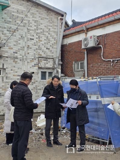 한국현대미술신문 배윤섭 기자 | 강북구의회 노윤상 의원(국민의힘 대표의원, 삼양동·송천동·삼각산동)은 지난 12월 24일, 재조성 공사가 진행 중인 솔샘길경로당(솔샘로 277-1) 송천동 현장을 방문해 공사 진행 상황을 점검하고 관계 부서와 향후 대책을 논의했다.