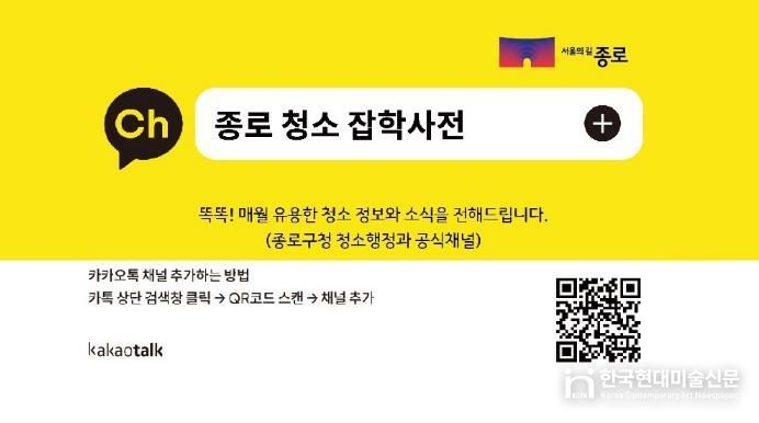 한국현대미술신문 배건 기자 | 종로구는 2026년 1월부터 카카오톡 채널을 통해 청소 정보를 쉽고 빠르게 받아볼 수 있는 '종로 청소 잡학사전' 운영을 시작한다.
