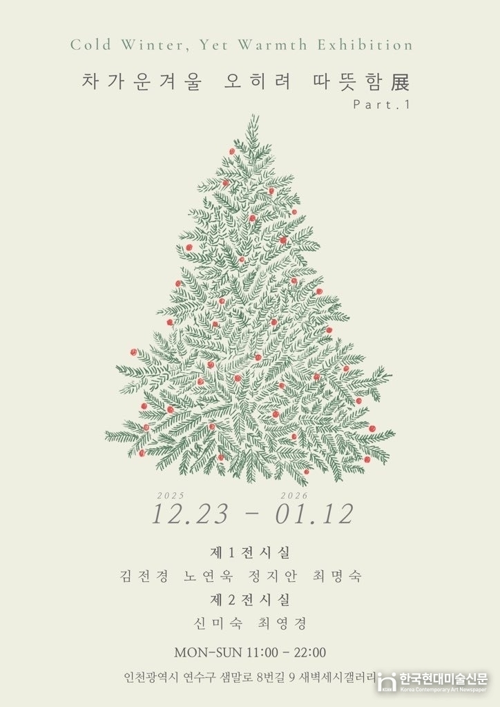 인천 연수구 3AM GALLERY 새벽세시에서 열렸던 〈차가운 겨울, 오히려 따뜻함 展〉 Part.1은 바로 그런 순간들을 포착한 전시다. 지난 2025년 12월 23일부터 2026년 1월 12일까지, 겨울이 품은 미묘한 온기를 6명의 작가가 각자의 언어로 풀어낸다.