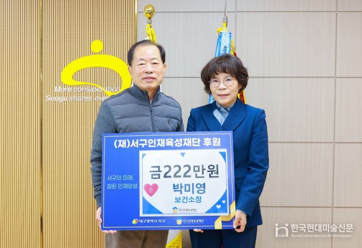 한국현대미술신문 정소영 기자 | 대구 서구청은 보건소 박미영 보건소장이 퇴임을 앞두고 지역 인재 육성을 위해 서구 인재육성재단에 222만 원을 기탁했다고 밝혔다.