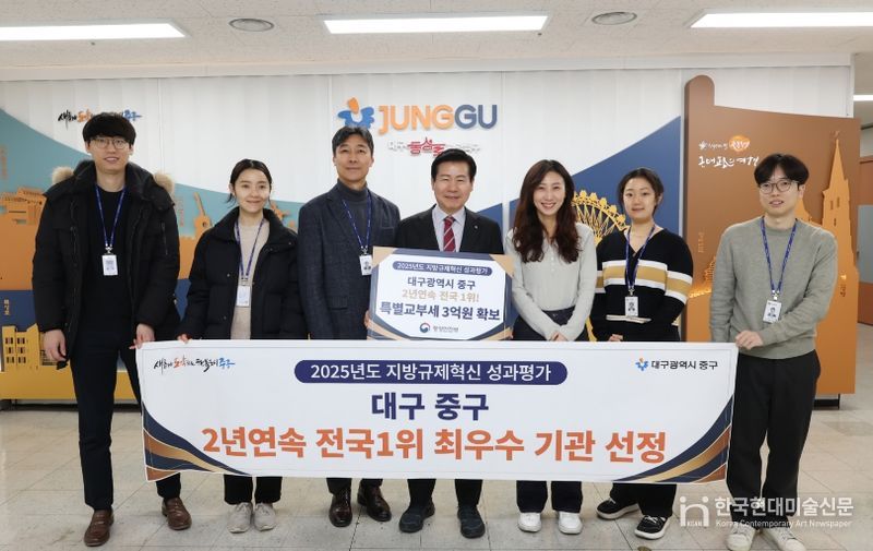 한국현대미술신문 정소영 기자 | 대구 중구는 행정안전부가 주관한 ‘2025년 지방규제혁신 성과평가’에서 2년 연속 최우수 기관으로 선정되며 규제혁신 선도 도시로서의 위상을 다시 한번 입증했다.