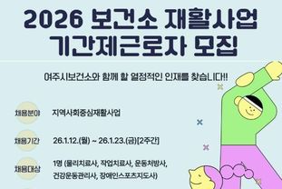한국현대미술신문 배윤섭 기자 | 여주시보건소는 지역 내 등록장애인과 예비장애인들의 건강관리를 위한 지역사회중심재활사업 추진을 위해 1월 12일부터 1월 23일까지 2주간 기간제근로자 채용 공고를 실시한다.