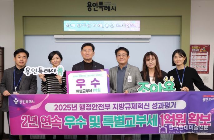 한국현대미술신문 배윤섭 기자 | 용인특례시는 지난해에 이어 ‘지방규제혁신 성과평가’에서 우수 기관으로 선정돼 특별교부세 1억 원을 확보했다고 16일 밝혔다.
