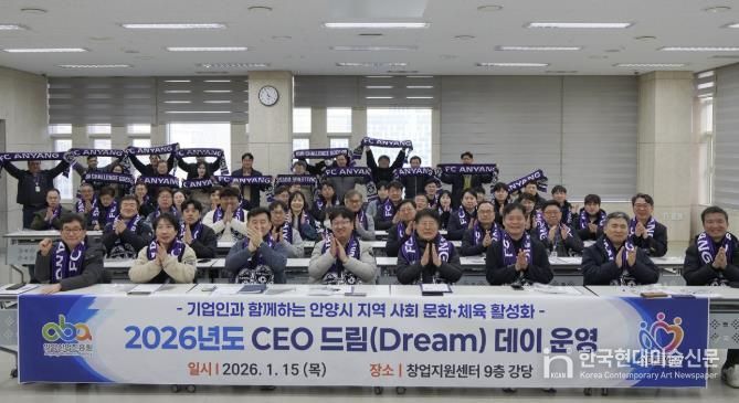 한국현대미술신문 배윤섭 기자 | 안양산업진흥원은 15일 오후 3시30분 안양창업지원센터 강당에서 관내 기업인 150여 명을 대상으로 지역사회 문화·체육 활성화를 위한 ‘2026 CEO 드림(Dream) 데이’를 열었다.