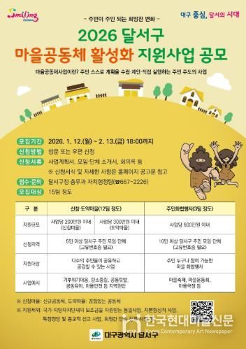 한국현대미술신문 정소영 기자 | 대구 달서구는 문화체육관광부가 주최하고 한국도서관문화재단이 주관하는 '2026년 작은도서관 순회사서 지원사업' 공모에 최종 선정됐다.