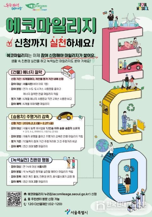 에코마일리지는 가정이나 사업장에서 전기·수도·가스 등 에너지 사용량을 절감하면 감축률에 따라 마일리지를 제공하는 서울시 참여 실천 프로그램이다.