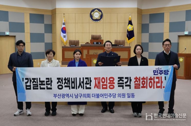 한국현대미술신문 정소영 기자 | 부산 2026년 1월 19일 남구의회 더불어민주당 의원 6인은 현재 남구청장과 남구청공무원노동조합의 갈등국면에 대한 성명서를 발표했다.