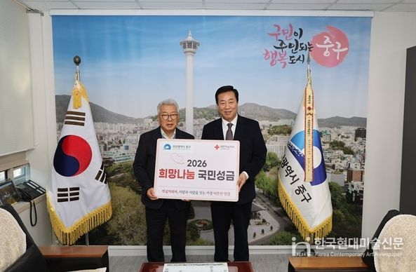 한국현대미술신문 정소영 기자 | 부산 중구는 지난 16일 대한적십자사 부산지사에 2026년도 적십자 특별회비 100만 원을 전달하며 이웃사랑 실천에 나섰다.