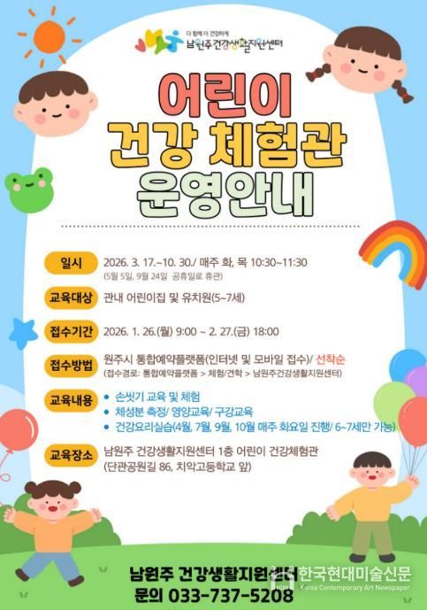 한국현대미술신문 원진 기자 | 남원주건강생활지원센터는 손 씻기, 영양 등을 주제로 미취학 아동들에게 건강 교육을 제공하는 ‘어린이 건강체험관’을 운영하고 있다.