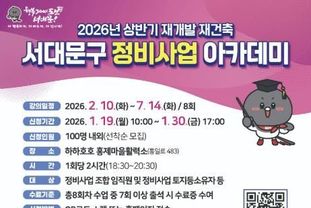 정비사업 조합 임직원이나 토지 등 소유자를 포함해 주민 누구나 수강할 수 있다. 이달 30일 오후 5시까지 선착순 100명을 모집하며 희망자는 서대문구청 홈페이지(분야별정보→통합온라인신청→일반신청)에서 신청하면 된다.
