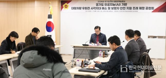 한국현대미술신문 배윤섭 기자 | 경기도의회 건설교통위원회 허원 위원장(국민의힘·이천2)은 19일 경기도의회 중회의실에서 '경기도 인공지능(AI) 기반 대형차량 우회전 사각지대 해소 및 보행자 안전 지원 조례' 제정을 위한 공청회를 개최했다.