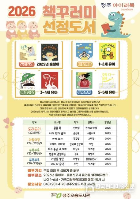 한국현대미술신문 신정은 기자 | 청주오송도서관은 청주시 영유아 독서운동 ‘청주 아이러북(LoveBook)’ 사업의 일환으로 2026년 영유아에게 선물할 대표도서 8권을 최종 선정했다고 26일 밝혔다.