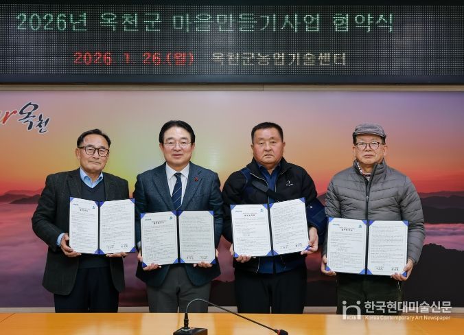 한국현대미술신문 신정은 기자 | 옥천군은 1월 26일 오후 2시, 옥천군농업기술센터 2층 소회의실에서 ‘2026년 옥천군 마을만들기사업 협약식’을 열고 동이면 금암2리, 안남면 도덕1리, 청산면 한곡리 등 3개 마을과 협약을 체결했다.