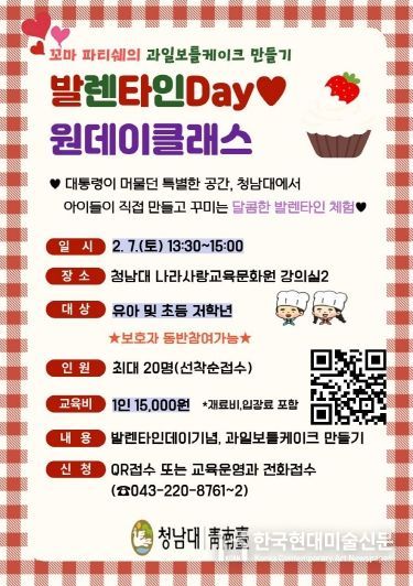 한국현대미술신문 신정은 기자 | 충청북도 청남대관리사업소는 다가오는 발렌타인데이를 맞아 어린이와 가족들이 함께 즐길 수 있는 특별한 체험의 장을 마련한다.