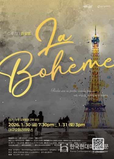 한국현대미술신문 정소영 기자 | 대구문화예술진흥원 대구오페라하우스는 2026 첫 공연으로 광주시립오페라단 제작의 푸치니 오페라 '라 보엠'을 1월 30일 오후 7시 30분, 31일 오후 3시에 대구오페라하우스에서 선보인다.