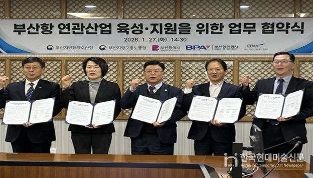 한국현대미술신문 정소영 기자 | 부산시는 27일 오후 2시 30분 부산항만공사 중회의실에서 부산지방해양수산청, 부산지방고용노동청, 부산항만공사, 부산항만산업총연합회와 '부산항 항만연관산업* 육성·지원을 위한 업무협약'을 체결했다고 밝혔다.