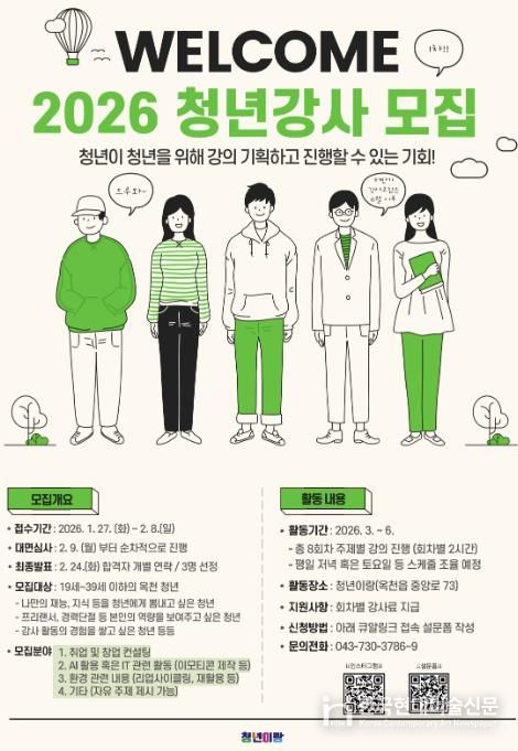 한국현대미술신문 신정은 기자 | 옥천군은 청년의 자율적 참여 확대와 정책 접근성 제고를 위해 청년센터‘청년이랑’을 중심으로 2026년 청년 참여형 프로그램을 본격 운영한다고 밝혔다.