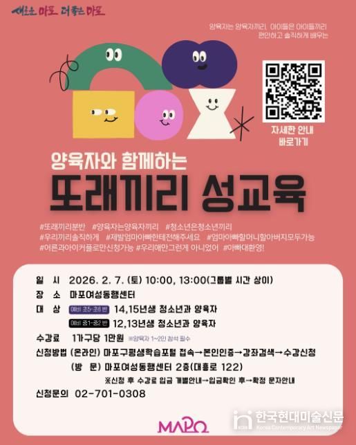 한국현대미술신문 배건 기자 | 마포구는 부모와 청소년 자녀가 함께 참여하는 ‘양육자와 함께하는 또래끼리 성교육’을 운영한다.