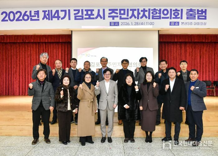 한국현대미술신문 배윤섭 기자 | 2026년 제4기 주민자치협의회가 출범하며 새로운 도약을 알렸다. 김포시는 28일 시청 대회의실에서 14개 읍‧면‧동 4기 주민자치회장으로 구성된 주민자치협의회의 첫 정기회의를 개최하고, 본격적인 4기 주민자치회 운영의 시작을 알렸다.