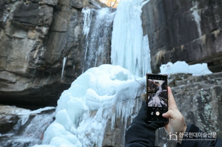 한국현대미술신문 신정은 기자 | 충북 괴산군 조령산 자락에 위치한 수옥폭포가 연일 이어진 강추위 속에서 거대한 빙폭과 고드름으로 뒤덮이며 한겨울에만 볼 수 있는 장관을 연출하고 있다.
