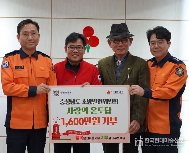 한국현대미술신문 신정은 기자 | 충청남도 소방발전위원회(소방정책 자문·협의기구)는 지난 30일 연말연시 이웃돕기 성금 모금인 ‘사랑의 온도탑’에 성금 1600만 원을 기탁했다고 1일 밝혔다.