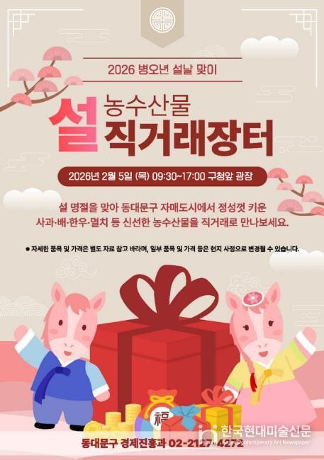 한국현대미술신문 배건 기자 | 동대문구가 5일 오전 9시 30분부터 오후 5시까지 구청 앞 미래광장에서 설 농수산물 직거래 장터를 연다.