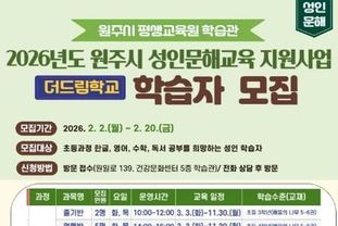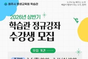 모집 기간은 주간반은 2월 5일 오전 9시부터 11일 오후 6시까지, 야간반은 2월 9일 오전 9시부터 13일 오후 6시까지다. 수강 신청은 원주시 통합예약플랫폼을 통해 선착순으로 접수한다. 자세한 사항은 원주시 학습관으로 문의하면 된다.