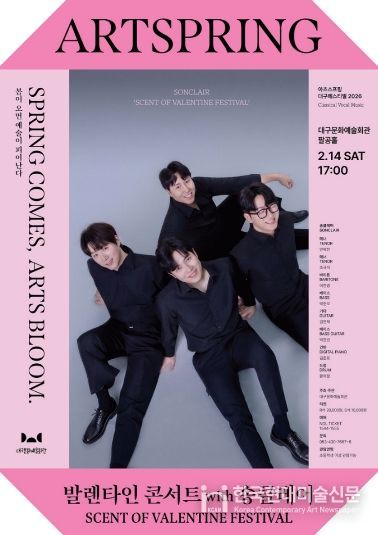 한국현대미술신문 정소영 기자 | 대구문화예술진흥원 대구문화예술회관은 오는 2월 14일 오후 5시, 팔공홀에서 지역 성악가로 구성된 남성 4인조 크로스오버 보컬 그룹 송클레어(SONCLAIR)와 함께하는 ‘발렌타인 콘서트 with 송클레어 – Scent of Valentine Festival’을 개최한다.