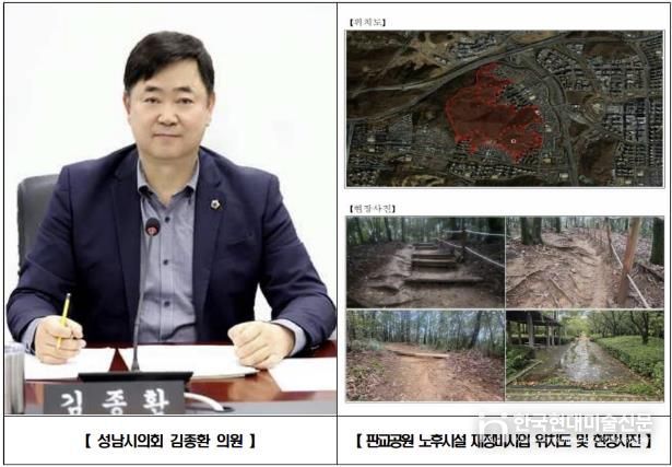 한국현대미술신문 배윤섭 기자 | 성남시의회 국민의힘 김종환 의원(판교·백현·운중·대장동, 예산결산특별위원장)은 분당구 판교동 판교공원 일원 노후 산책로와 바닥포장 등을 정비하는 재정비공사가 본격 추진됨을 밝혔다.