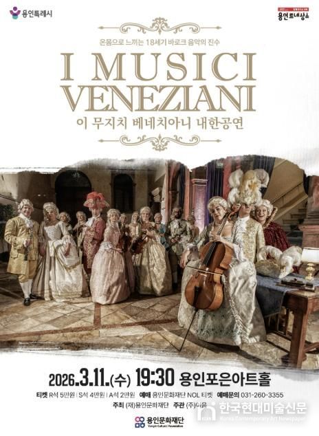 한국현대미술신문 배윤섭 기자 | 용인문화재단은 오는 3월 11일 용인포은아트홀에서 세계적인 바로크 앙상블 ‘이 무지치 베네치아니(I Musici Veneziani)’의 내한 공연을 개최한다.