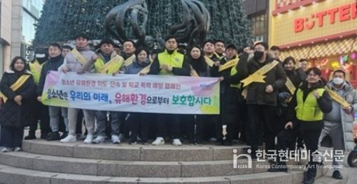 한국현대미술신문 정소영 기자 | 부산 중구는 지난 3일 중구청소년유해환경감시단(회장 김성), 중구청 직원 등 30여명이 모여 겨울방학 계기 청소년 유해환경 근절을 위한 민관합동 캠페인을 실시했다.