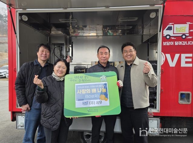 한국현대미술신문 배윤섭 기자 | 평택북부장애인복지관(관장 유영애)은 2월 5일(목) ㈜세우(대표 정세환)로부터 지역사회 장애 당사자 및 가정의 풍요로운 명절 지원을 위한 배 50상자를 후원받았다.