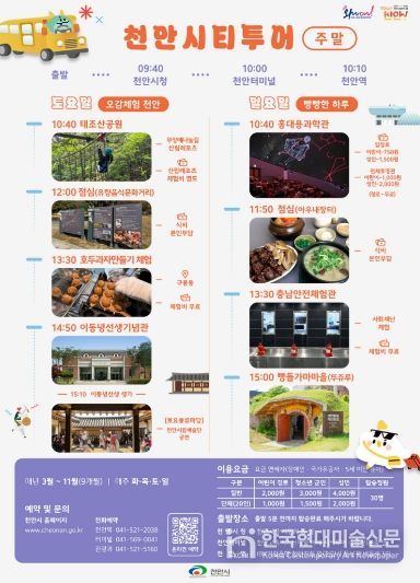 한국현대미술신문 신정은 기자 | 천안시가 3월부터 11월까지 ‘2026년 천안시티투어’를 본격적으로 운영한다고 9일 밝혔다.