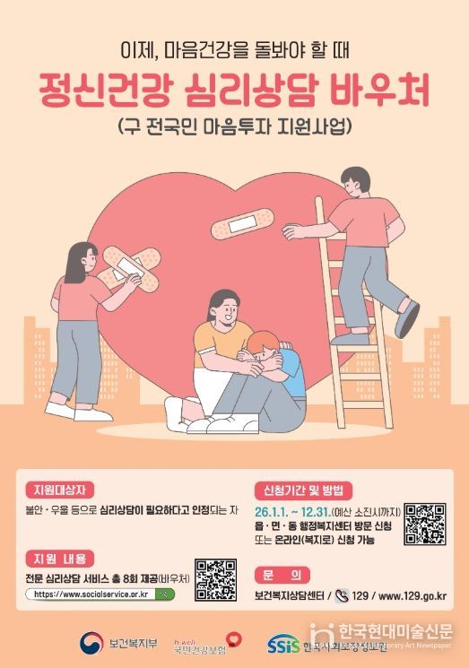 한국현대미술신문 신정은 기자 | 공주시는 시민들의 마음건강을 돌보고 정서적 어려움을 조기에 발견해 대응하기 위해 전문 심리상담 서비스를 제공하는 ‘정신건강 심리상담 바우처사업’을 2026년에도 본격 추진한다고 밝혔다.