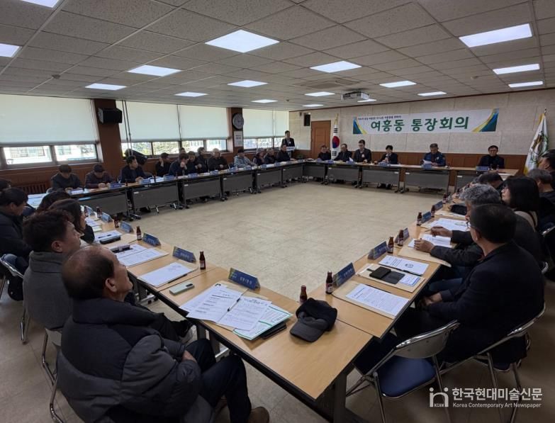 한국현대미술신문 배윤섭 기자 | 여주시 여흥동은 6일 오전, 행정복지센터 2층 회의실에서 제10대 김광덕 부시장과 함께하는 2월 1차 통장회의를 개최했다. 회의에는 김광덕 부시장, 김영완 여흥동장, 정지남 홍문지구대장, 이병길 여주농협조합장 및 33개 마을 통장이 참석했다.